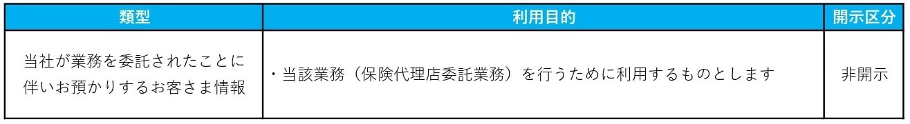 適法な手続きに基づき取得した個人情報(顧客情報)を当該業務の遂行に必要な範囲内(お客さまへの見積書・保険設計書等の作成のために、